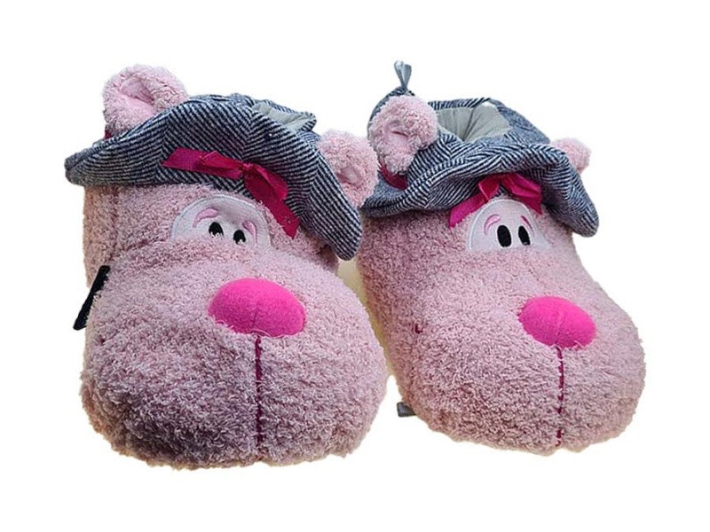 Κλειστές παντόφλες ζωάκι, χνουδωτές από πολύ μαλακό ύφασμα και αναπαυτική σόλα που δεν γλιστράει.